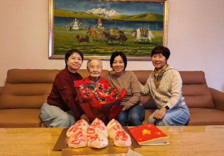 祝寿现场暖意融融,欢声笑语萦绕其间。大家围聚在解老身边,共话家常,详细询问她的身体状况和日常生活,叮嘱老人保重身体、安享幸福晚年。解老虽已百岁高龄,依旧精神矍铄、思路清晰,对组织的长期关怀深表感谢,脸上始终洋溢着幸福的笑容。
